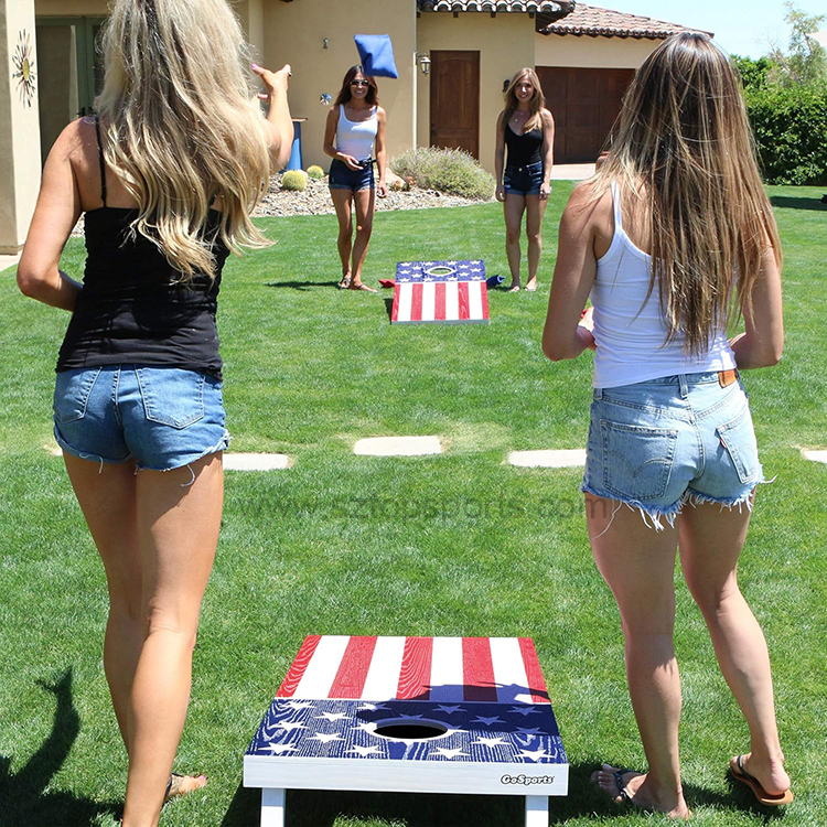 - Patriotic Amusement: Drawing inspiration from the timeless allure of vintage aesthetics, these oak cornhole boards are elegantly varnished with the iconic American Flag. The classic stars and stripes motif isn’t just perfect for energetic gameplay during holiday weekends. When they’re not in use for games, they transform into remarkable patriotic decor pieces, adding a touch of national pride to any space.