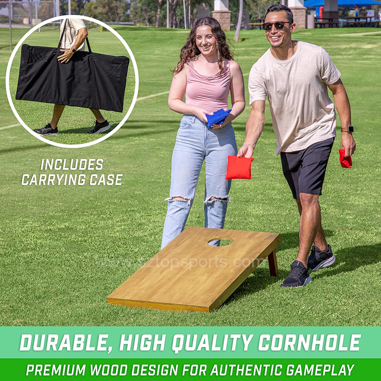 PREMIUM STAINED AESTHETIC: Adorned with a professional light – brown stain finish, this set exudes a stylish and sophisticated charm. It not only looks great but also evokes the timeless joy of spending quality time tossing bean bags with friends and family.