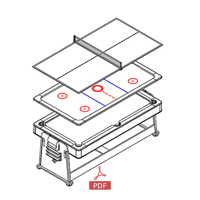 | MODEL NO. | HPS-P724DW | ACCESSORIES | 1. English Manual 2. Billiard table: 1) 2 1/4″ ball set x 1 set 2) Triangle x 1 pc, 3) 57″ Cue x 2 pcs, 4) Brush x 1 pc, 5) Chalk x 2 pcs. 3. Table tennis table: 1) 3pcs balls, 2) 2pcs table tennis bats, 3) 1set net. 4. Air hockey table: 1) 2pcs pucks, 2) 2pcs Strikers. 3)110V/240V plug and motor |