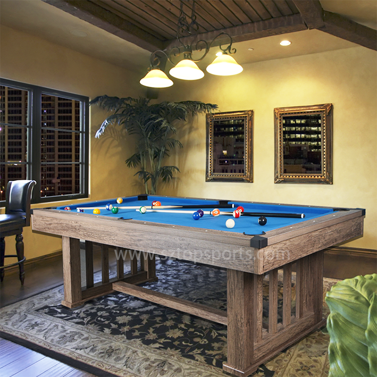 - POOL TABLE: Rustic brown table body with four felt colors available(black, blue, red, green). The weight: 282 pounds Dimensions: 84″ length x 48″ width x 33″ height Pocket diameter: regular size;