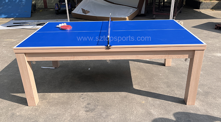 | PLAYFIELD | 18mm engineered wood with PVC lamination | ACCESSORIES | 1. Manual in English; 2. Billiard table: 1) 2 1/4″ ball set x 1 set 2) Triangle x 1 pc, 3) 57″ Cue x 2 pcs, 4) Brush x 1 pc, 5) Chalk x 2 pcs. 3. Pingpong table: two bats, net, post, balls. |