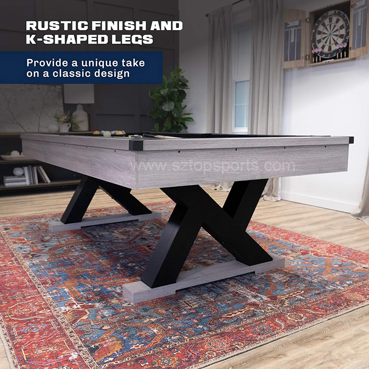- STYLIST RUSTIC BILLIARDS TABLE IN GAME ROOM SIZE – Measures 84” x 48” x 32” and recommended for rooms larger than 17′ x 13′. Great for man caves, game rooms, rec rooms or basements. Just add pool table accessories and you’re ready to play;