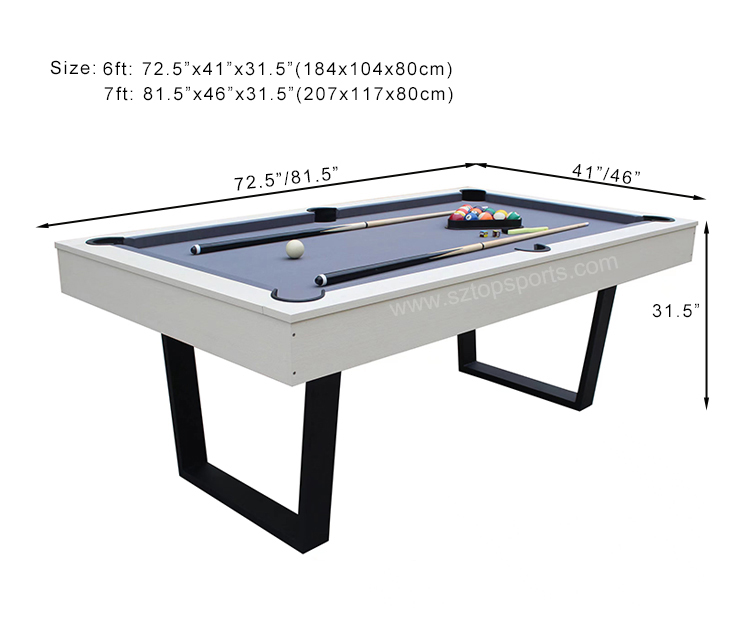 - 7 FT 3 IN 1 BILLIARDS TABLE: Heavy-duty, mid-size pool table measures 6.79ft x 3.84 ft x 2.63 ft; Full set includes 7 ft table, 2 (57 in.) cue sticks, 15 regulation pool balls and cue ball, ball rack, felt brush and chalk, PingPong net, table tennis bat plus balls;
