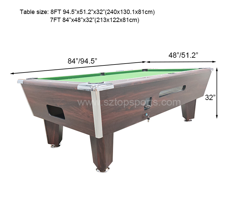 • 8 FT COIN OPERATED BILLIARDS TABLE: Heavy-duty, mid-size pool table measures 8 ft x 4.25 ft x 2.67 ft; Full set includes 8 ft table, 2 (57 in.) cue sticks, 15 regulation pool balls and cue ball, ball rack, felt brush and chalk, 50 pcs coins;