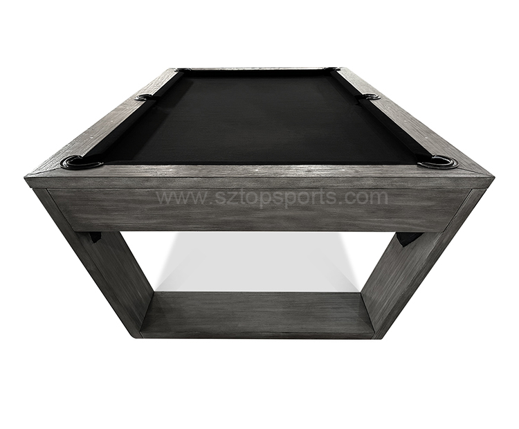 | PACKAGE METHOD | K/D, need assembly | ACCESSORIES | 1. Manual in English; 2. Billiard table: 1) 2 1/4″ ball set x 1 set 2) Triangle x 1 pc, 3) 57″ Cue x 2 pcs, 4) Brush x 1 pc, 5) Chalk x 2 pcs. |