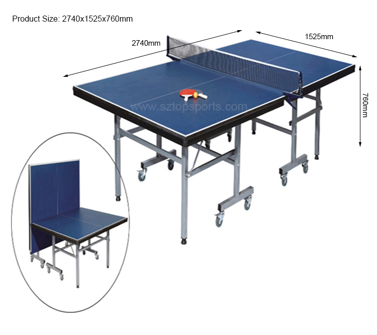 Indoor Training 15 mm Professional Folding PingPong Table with Lockable Casters