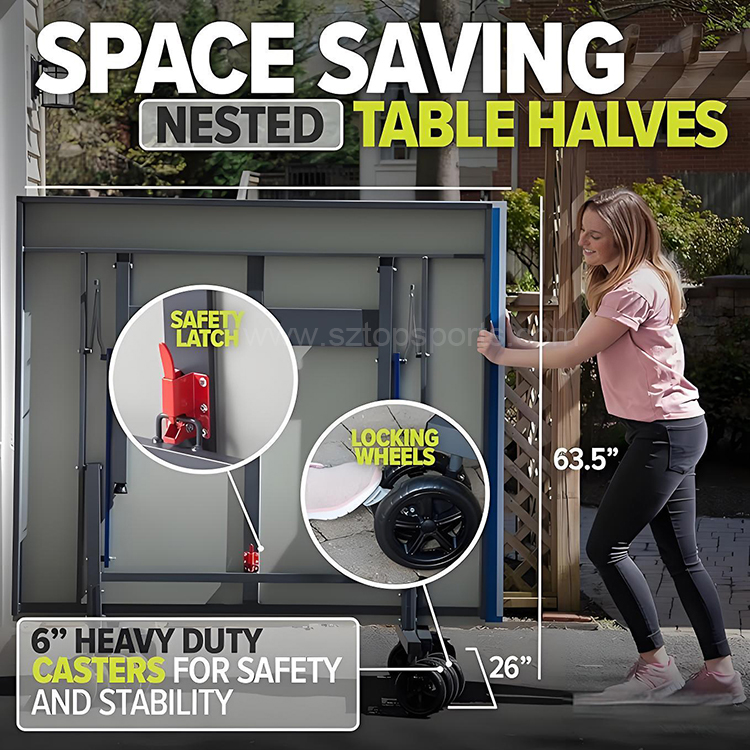 - PLAYBACK MODE & COMPACT STORAGE: Foldable ping pong table separates into 2 independent halves, more portable table tennis table & stores in smaller spaces. Utilizing the automatic anti-tilting locks, easily unfold one table half for solo playback mode;