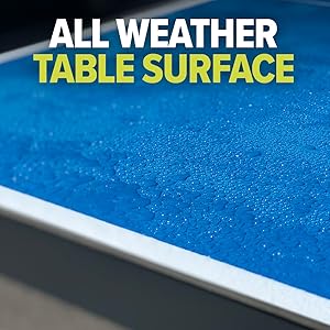 - 40mm UNDERCARRIAGE & 3 INCH WHEELS: Tabletop is a durable 6mm thick aluminum plastic composite surface, resistant to warping and chipping. The table sits on a 40mm x 40mm rust-resistant, powder-coated undercarriage
